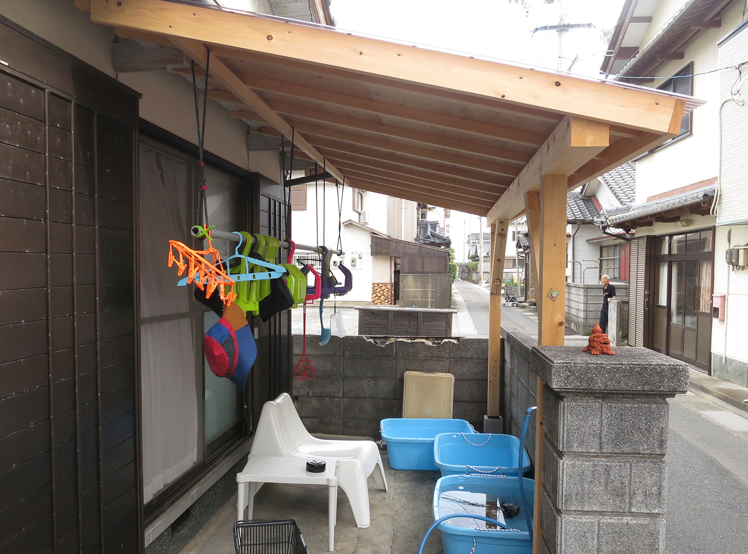 器材用ハンガーがあるので、そのまますぐに干せます。