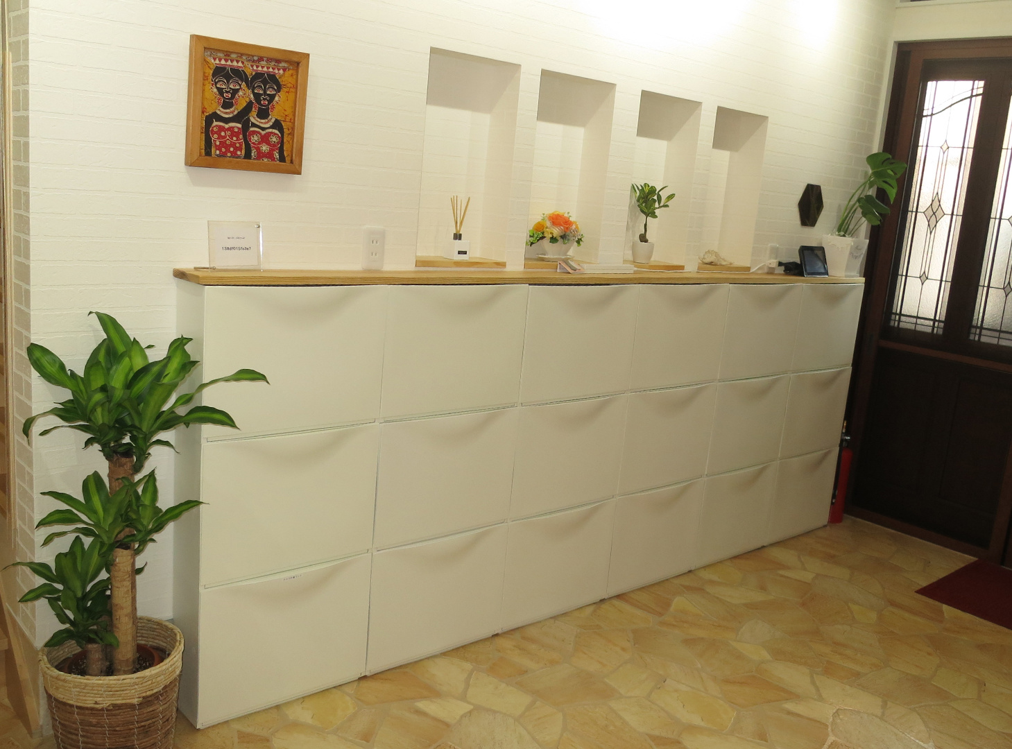ファンタジー風のデザインで、壁や天井にキャラクターがいっぱいです。